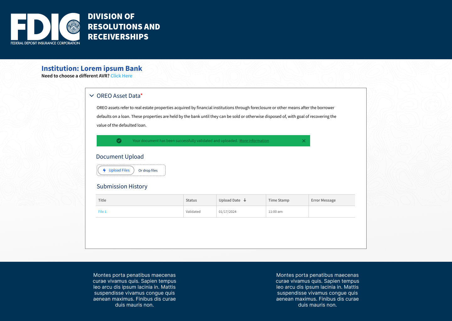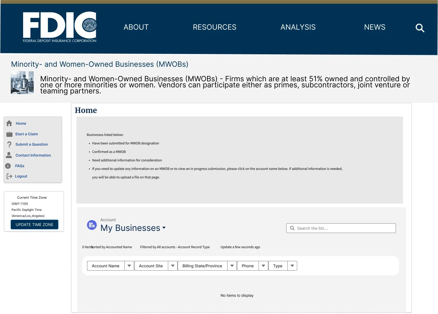 FDIC Landing Page in Contractor Portal